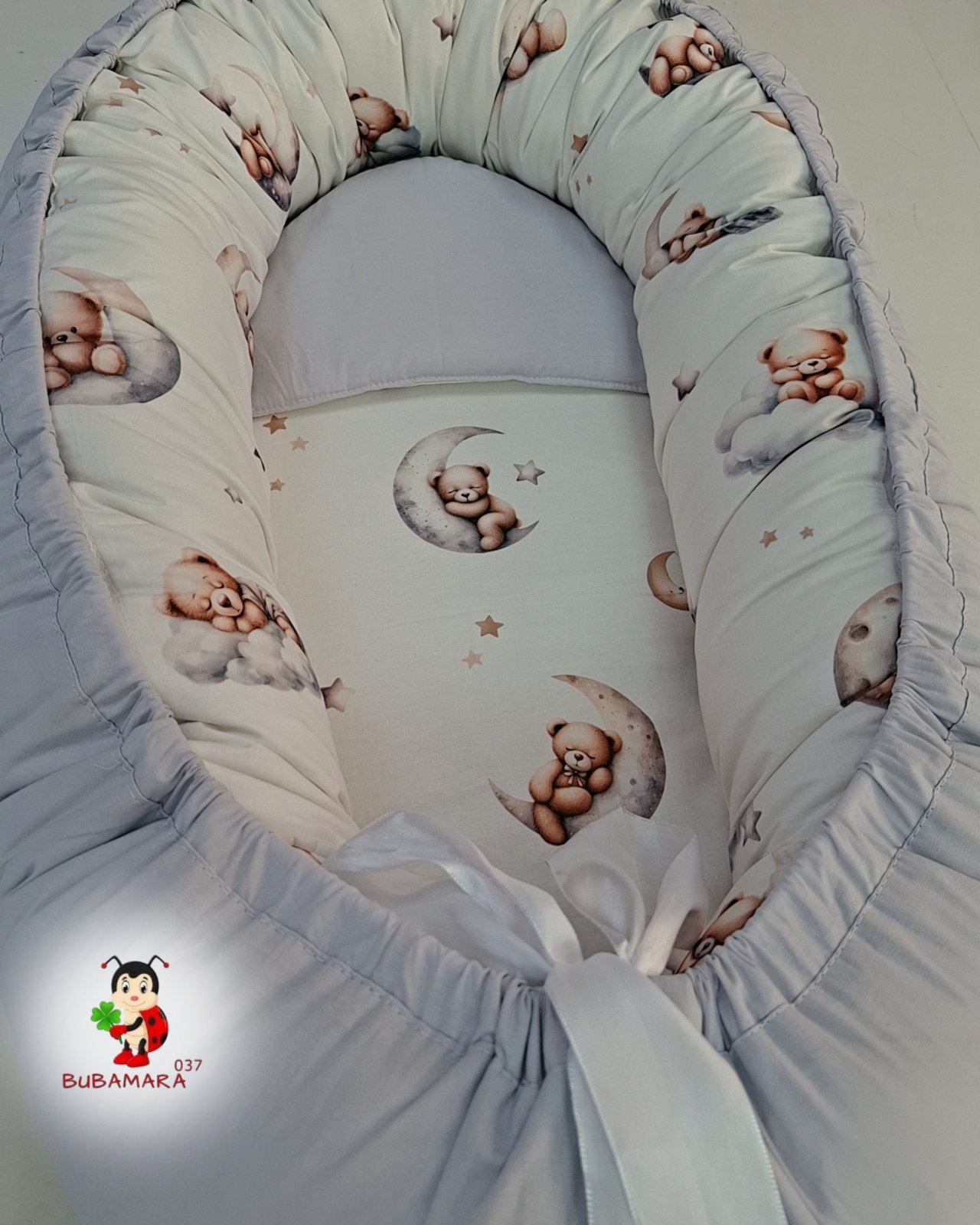 Gnezdo za bebe mede na mesecu, svetlo sivo