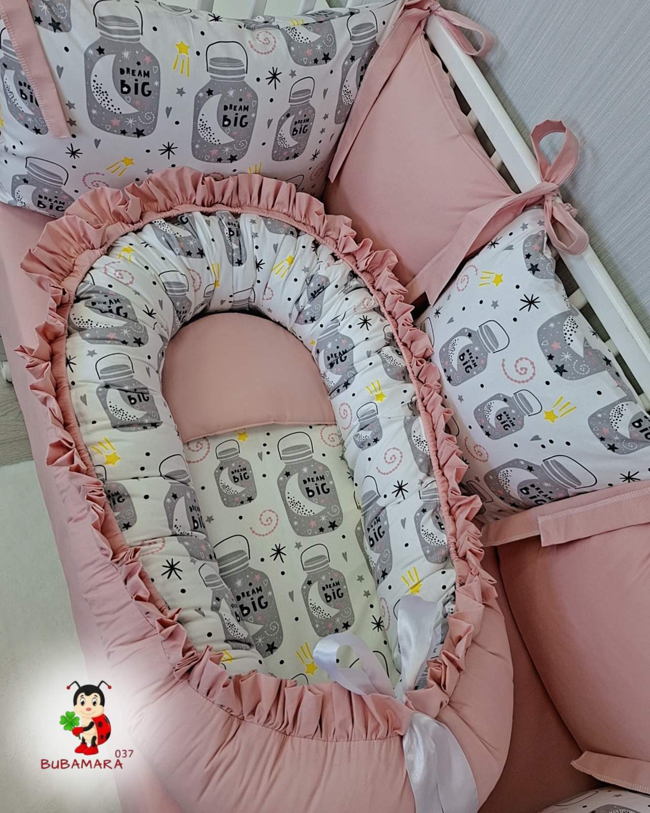 Gnezdo za bebe sa karnerom puder roze Dream big