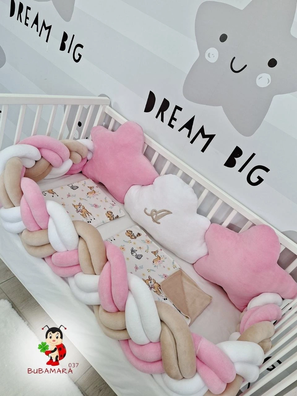 Pletenice su pravi hit u proizvodnji posteljinskog programa za krevece. Glavna uloga im je dekorativna, priznaćete da se najlepše fotografije novorođenčeta prave pomoću pletenica. Sem dekorativnog svojstva, izuzetno su praktične jer pružaju dodatnu potporu pri spavanju, doprinose ušuskanosti bebe, a pritom sprečavaju bilo kakvu mogućnost povrede o rešetke kreveca. Iskustvo nam je pokazalo da bebe u starijem uzrastu obožavaju pletenice, koriste ih kao jastuk ili igracku za grljenje. Vaši mali radoznalci sada su potpuno bezbezdni u svom krevecu.