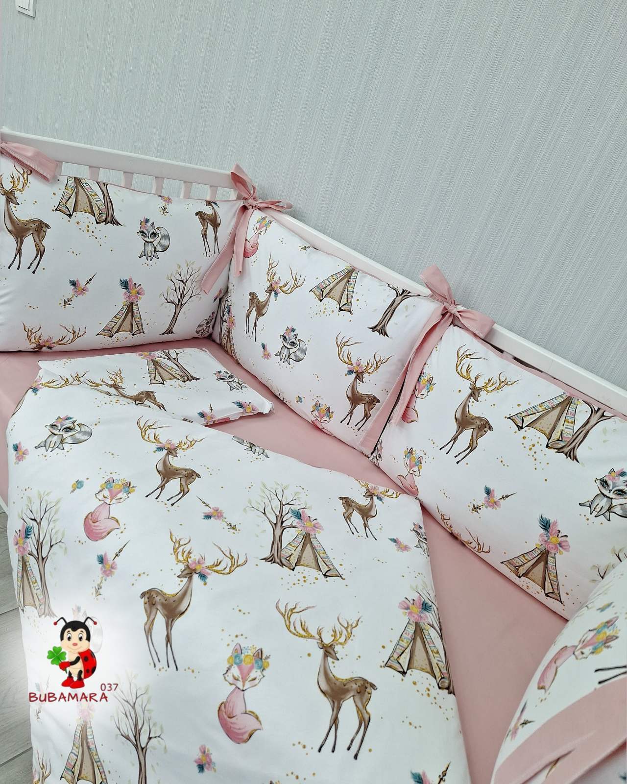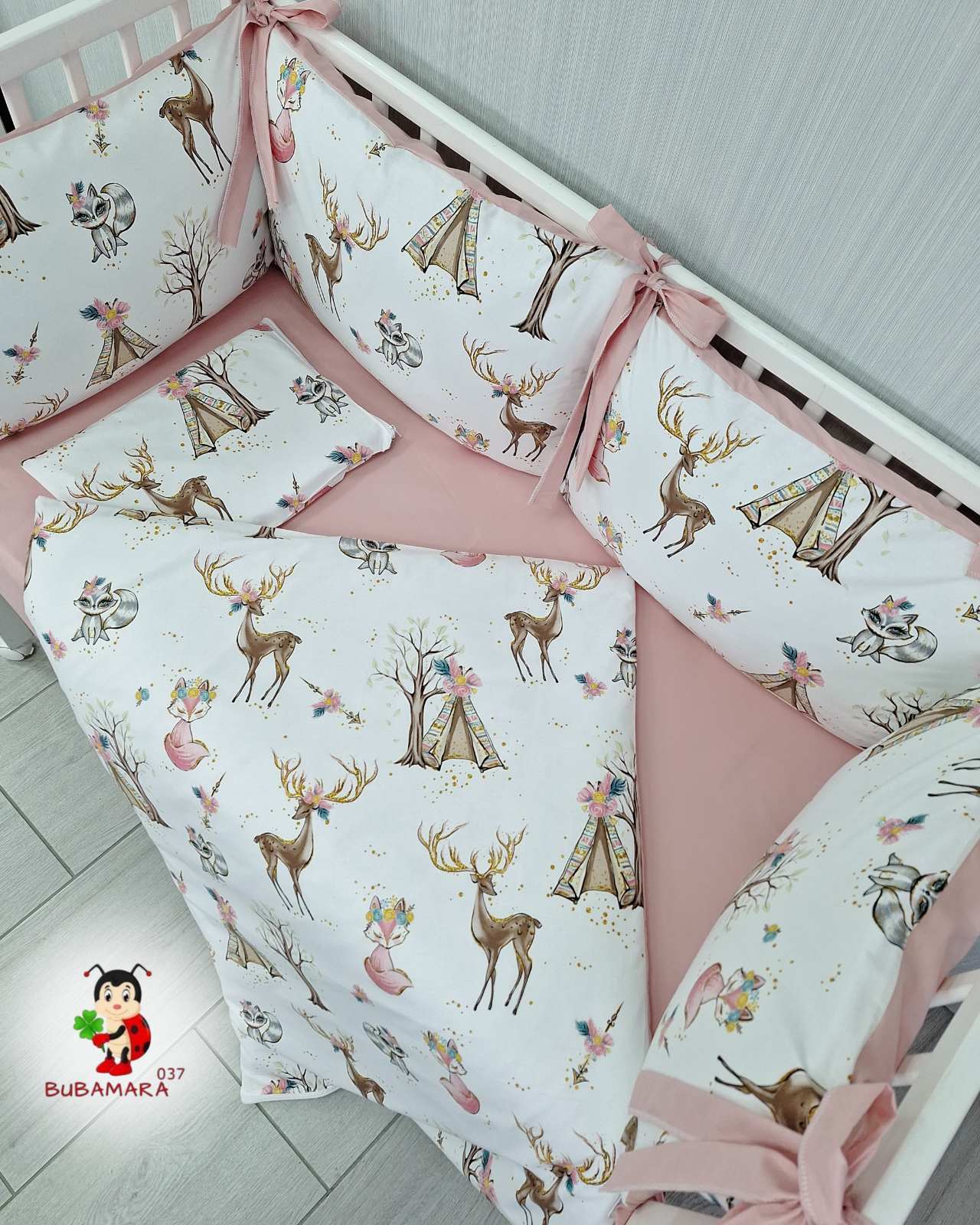 Set za krevetac sa ogradicom od jastuka jelen i lisica