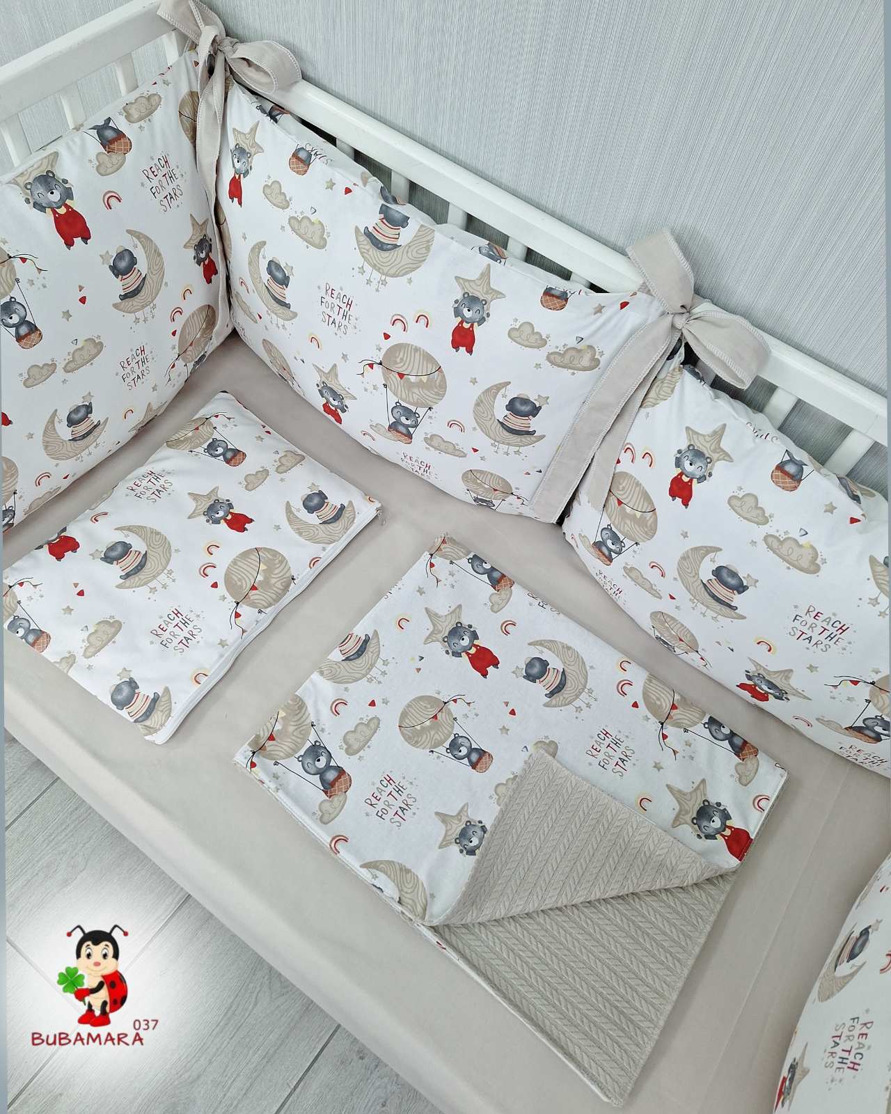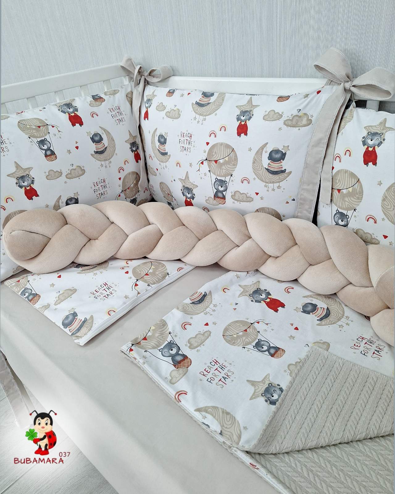 Setovi za krevetac su osmišljeni tako da bebi pruže sve ono što joj je neophodno za najslađe snove, uz neizostavnu nežnost prirodnog pamuka, najboljeg materijala za nežnu dečju kožu. U jednom setu se nalazi sve što je potrebno da bi se krevetac opremio u potpunosti.