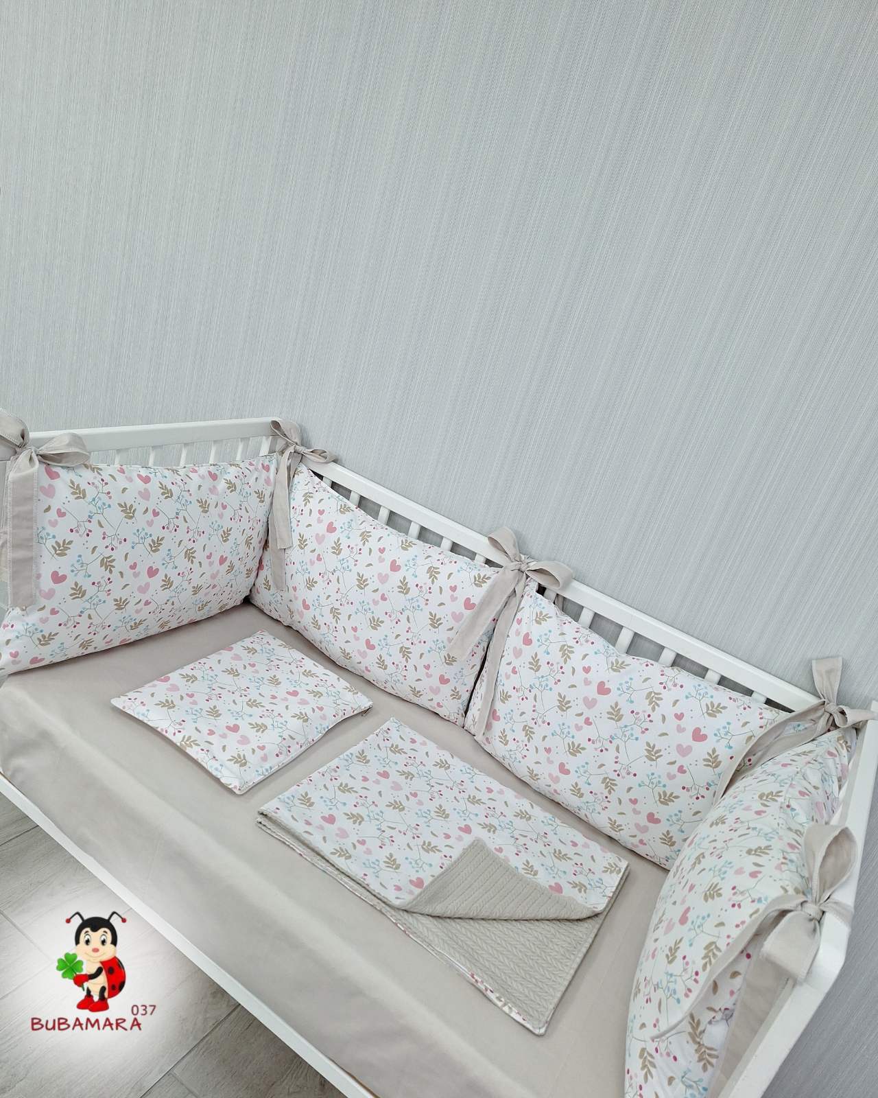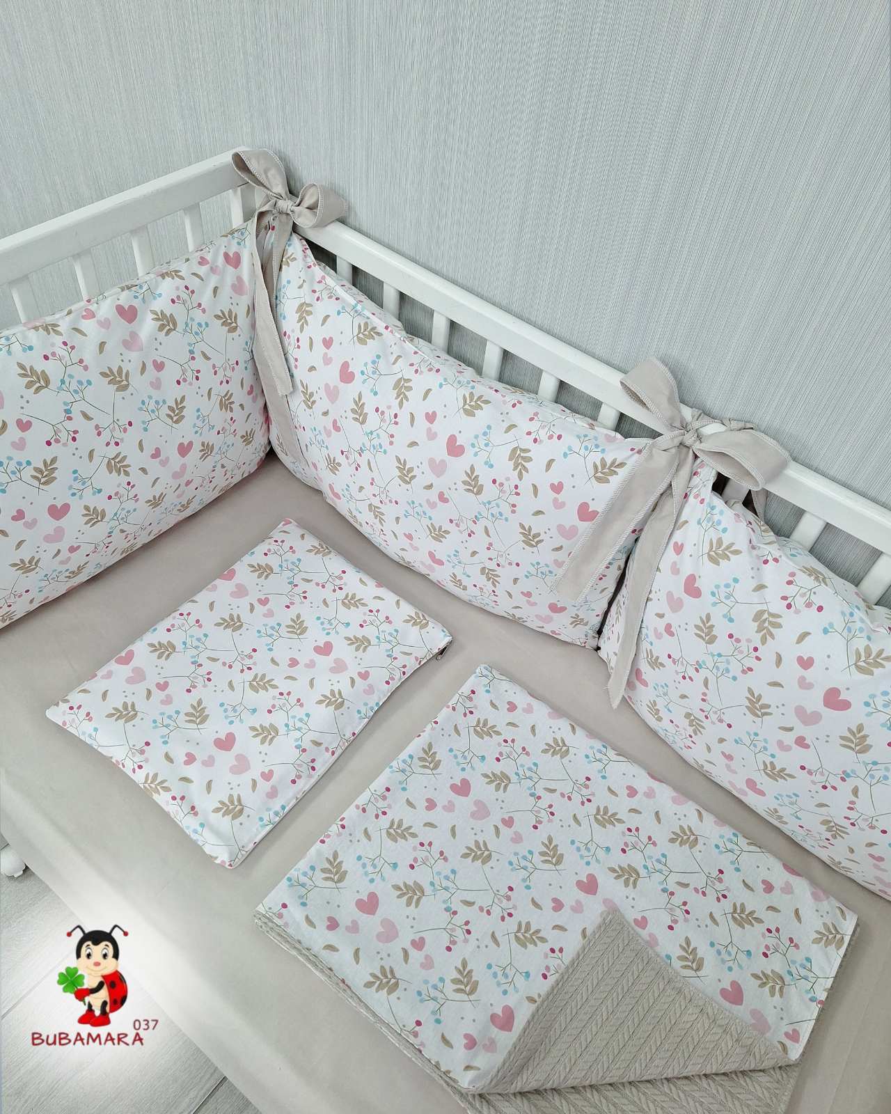Set za krevetac sa ogradicom od jastuka cvetići
