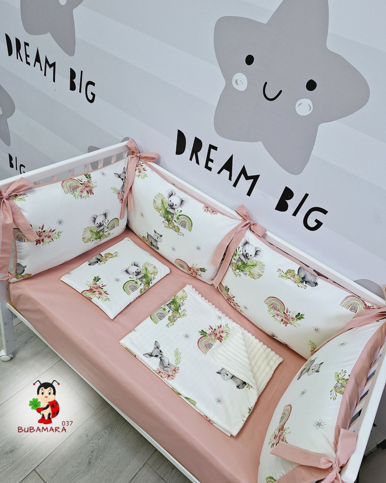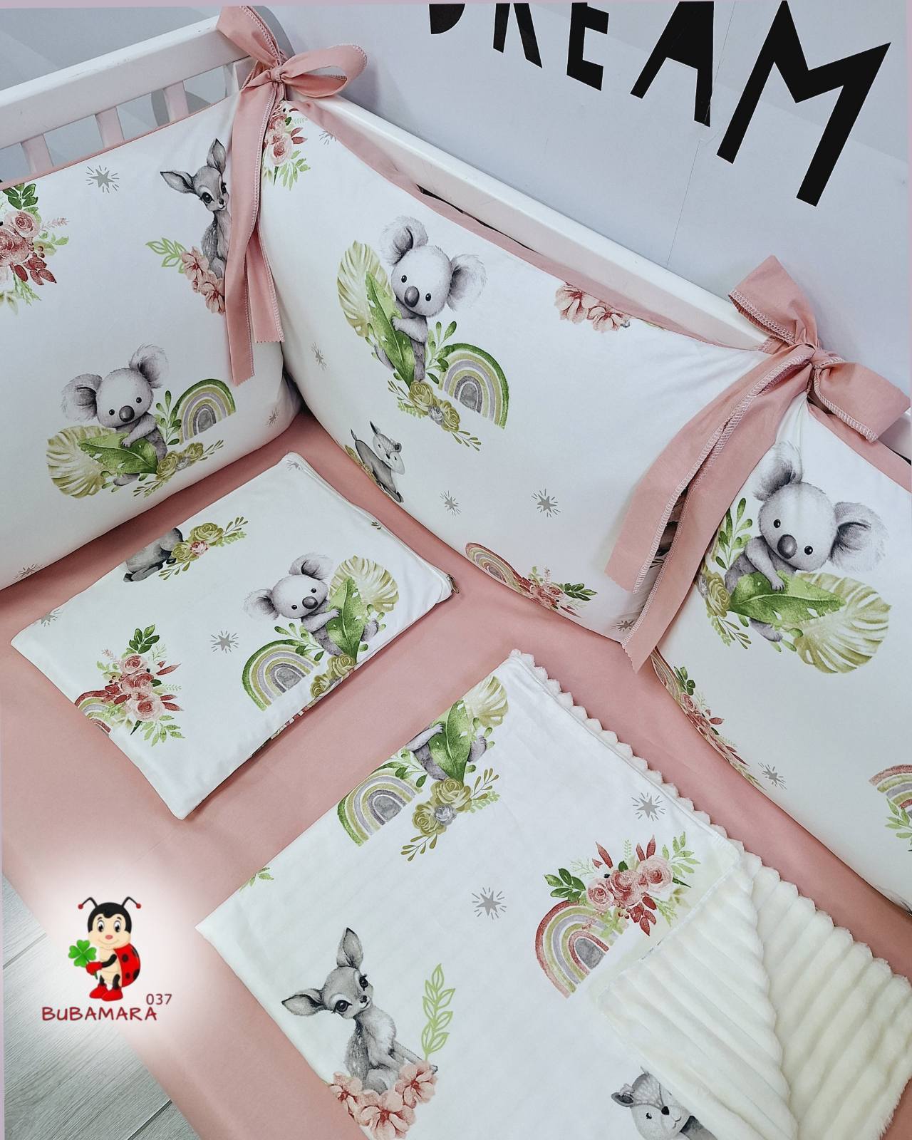 Setovi za krevetac su osmišljeni tako da bebi pruže sve ono što joj je neophodno za najslađe snove, uz neizostavnu nežnost prirodnog pamuka, najboljeg materijala za nežnu dečju kožu. U jednom setu se nalazi sve što je potrebno da bi se krevetac opremio u potpunosti.