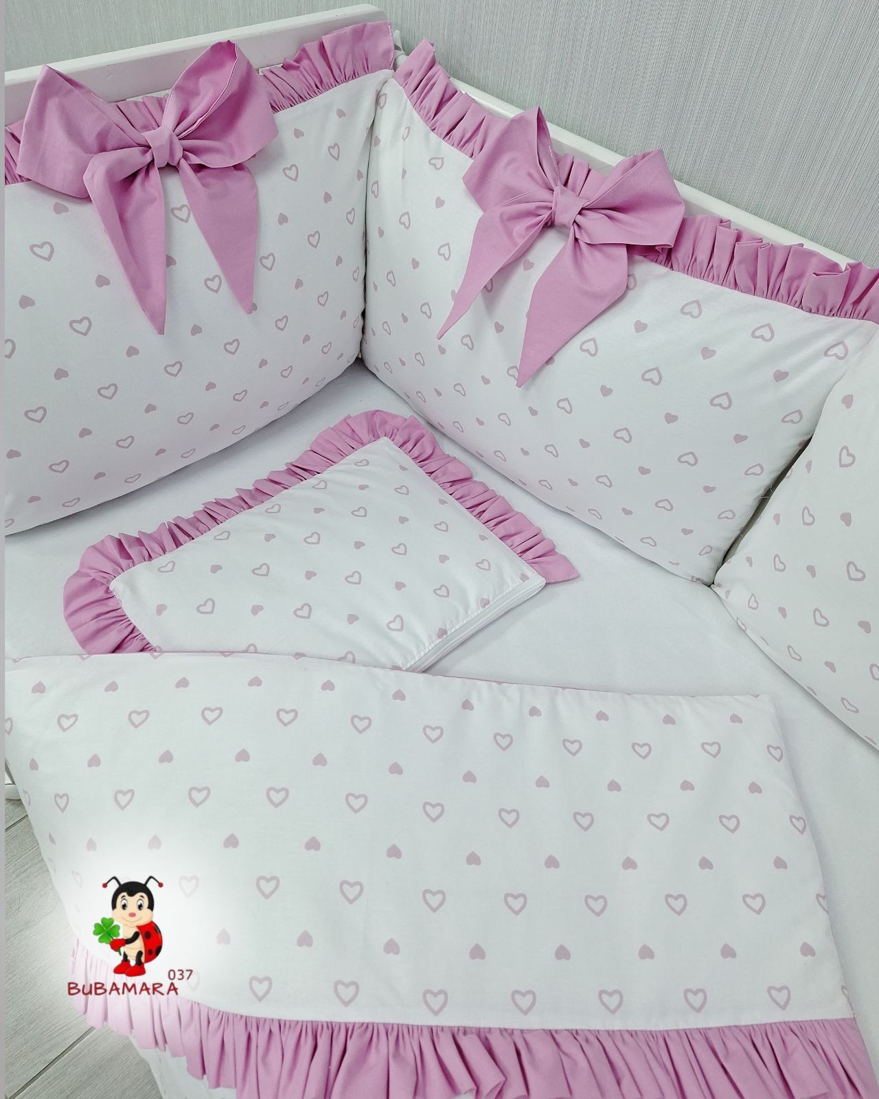 Set za krevetac sa ogradicom od jastuka sa karnerom