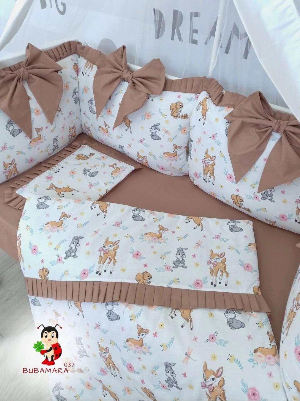 Set za krevetac sa ogradicom od jastuka sa karnerom
