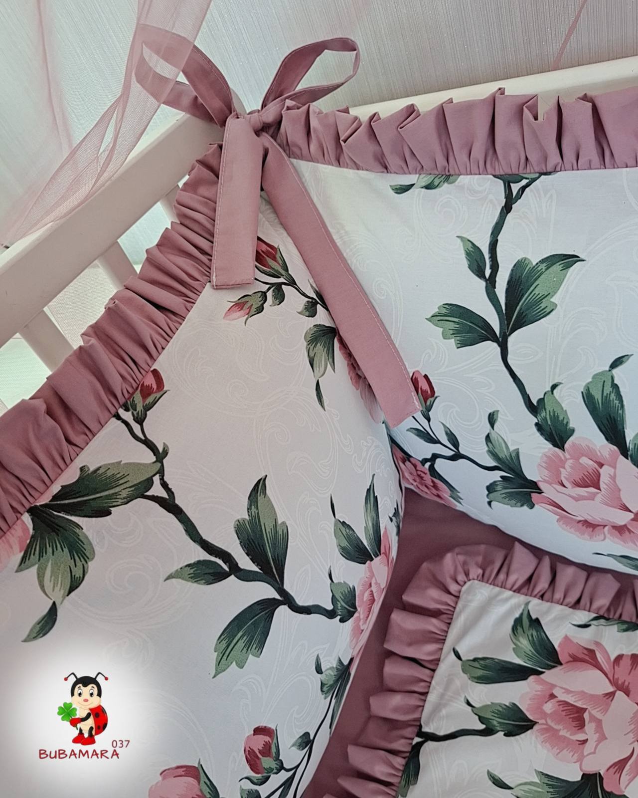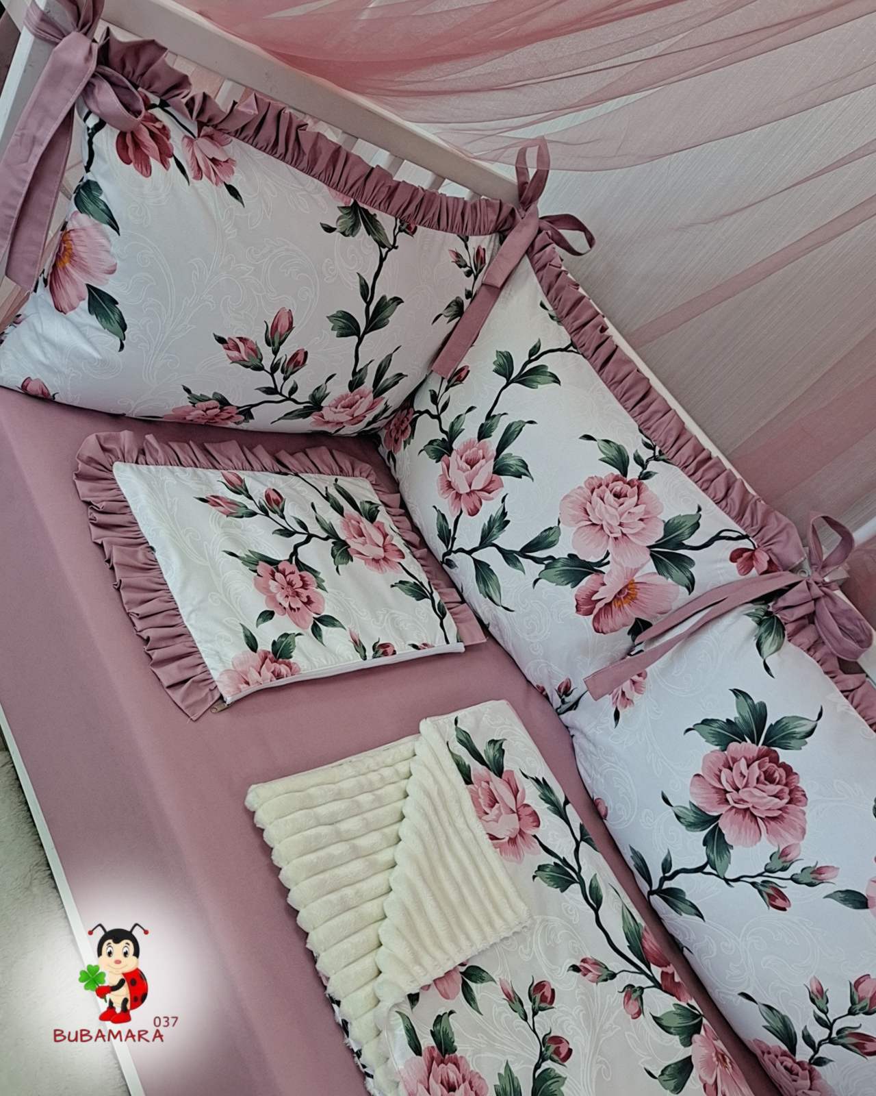 Set za krevetac sa ogradicom od jastuka sa karnerom cveće