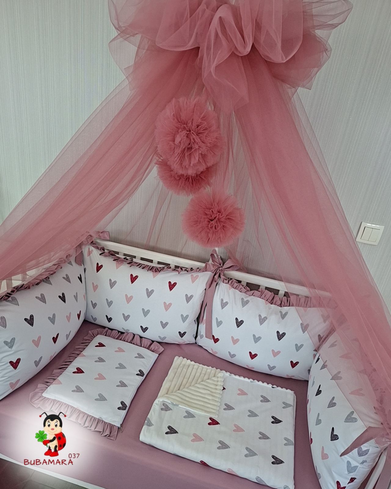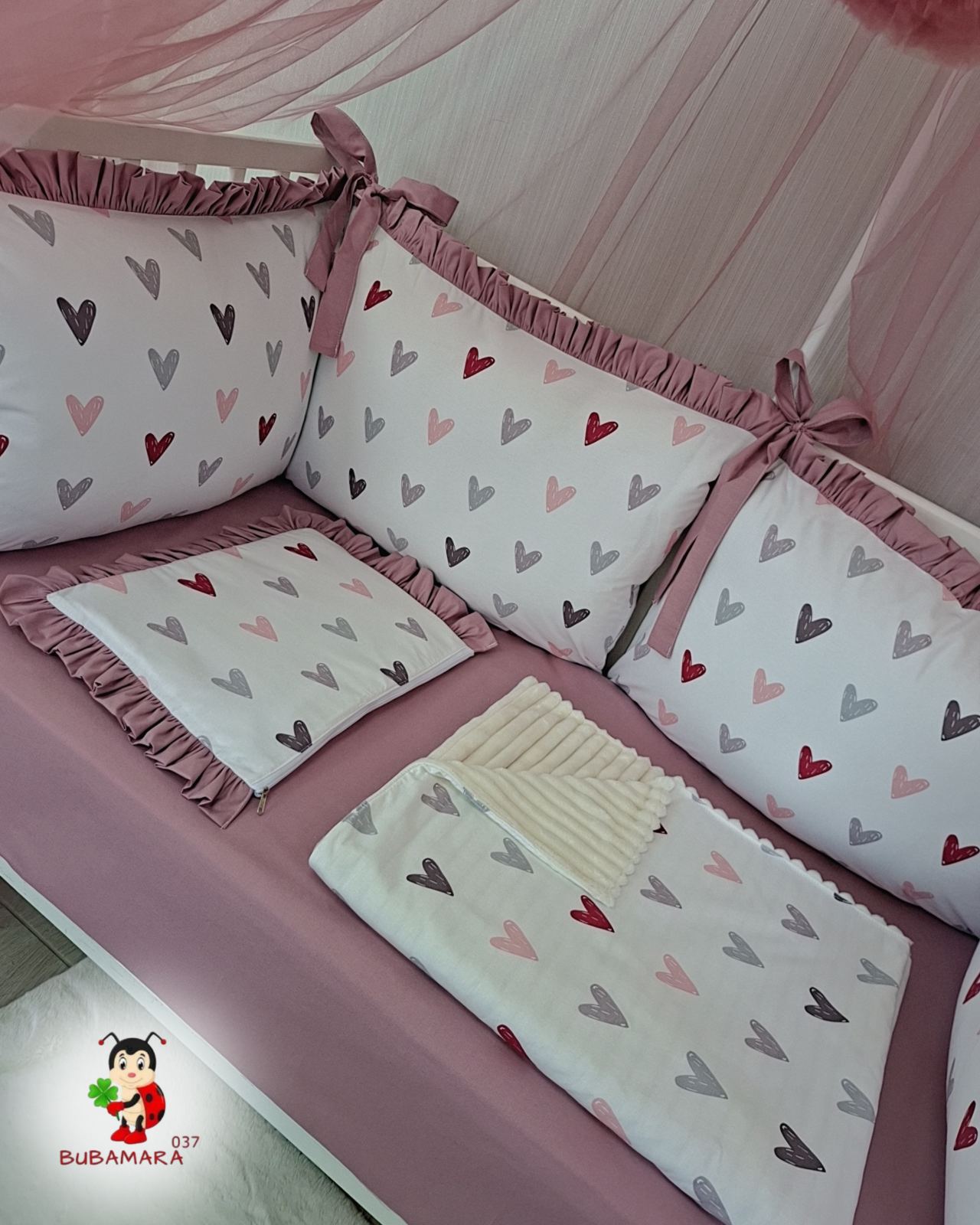 Set za krevetac sa ogradicom od jastuka sa karnerom srculenca