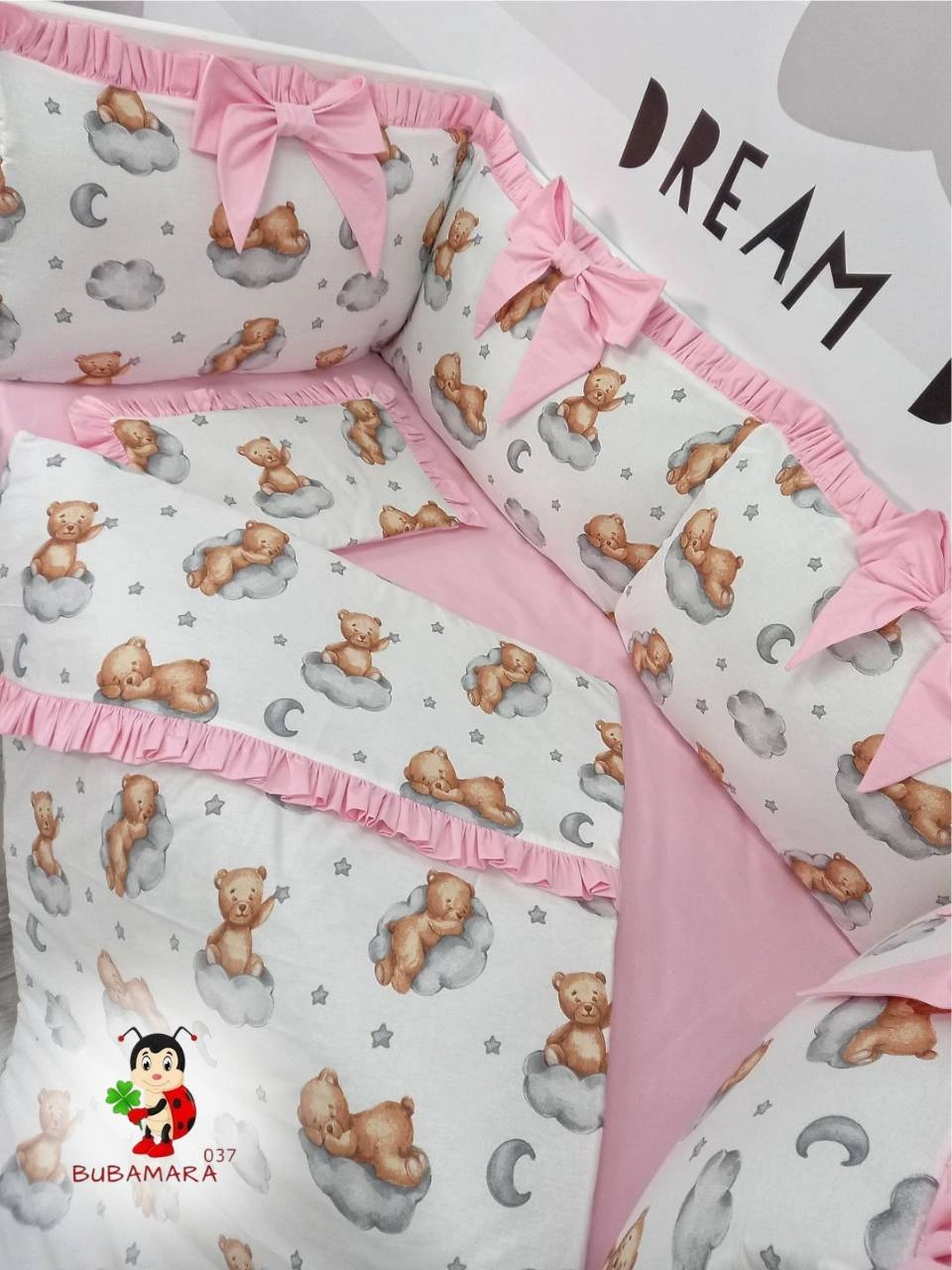 Setovi za krevetac su osmišljeni tako da bebi pruže sve ono što joj je neophodno za najslađe snove, uz neizostavnu nežnost prirodnog pamuka, najboljeg materijala za nežnu dečju kožu. U jednom setu se nalazi sve što je potrebno da bi se krevetac opremio u potpunosti.