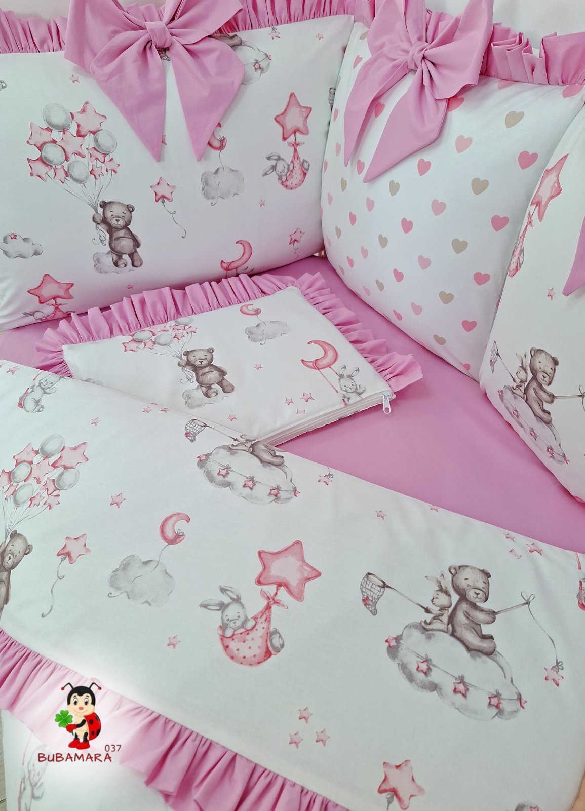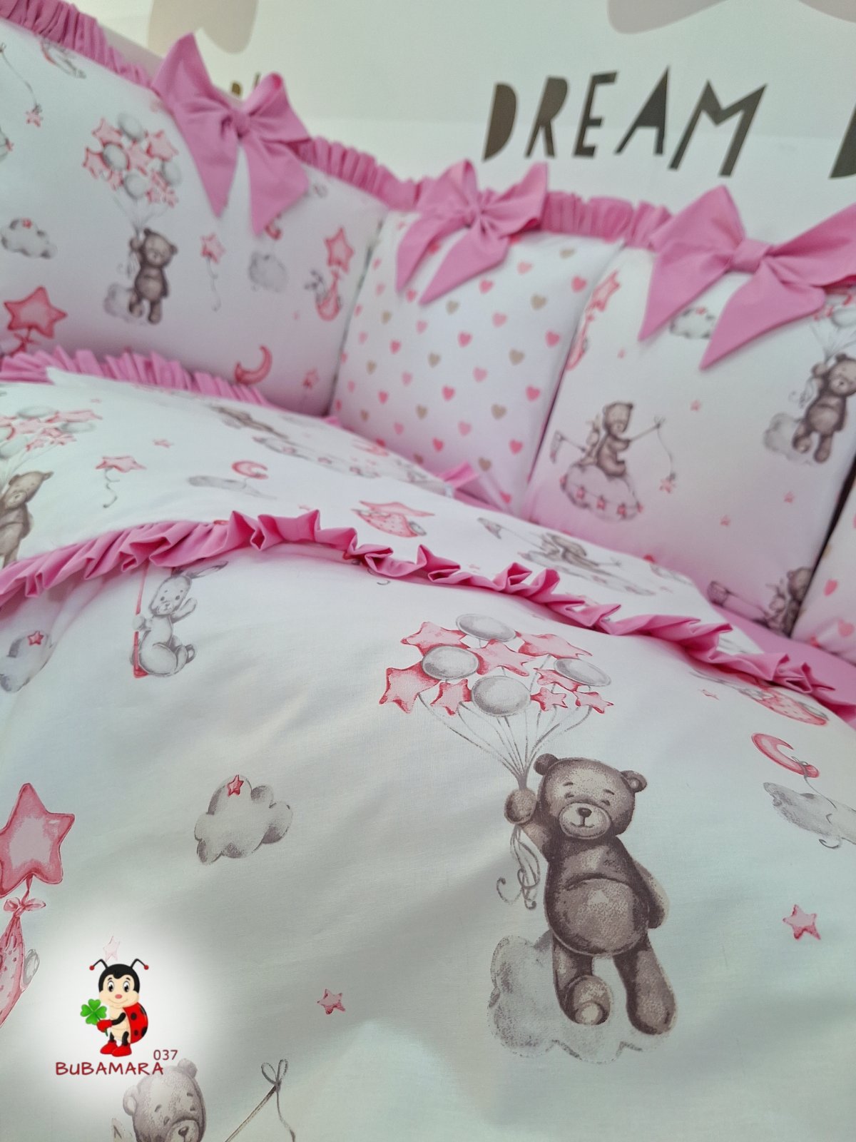 Setovi za krevetac su osmišljeni tako da bebi pruže sve ono što joj je neophodno za najslađe snove, uz neizostavnu nežnost prirodnog pamuka, najboljeg materijala za nežnu dečju kožu. U jednom setu se nalazi sve što je potrebno da bi se krevetac opremio u potpunosti.