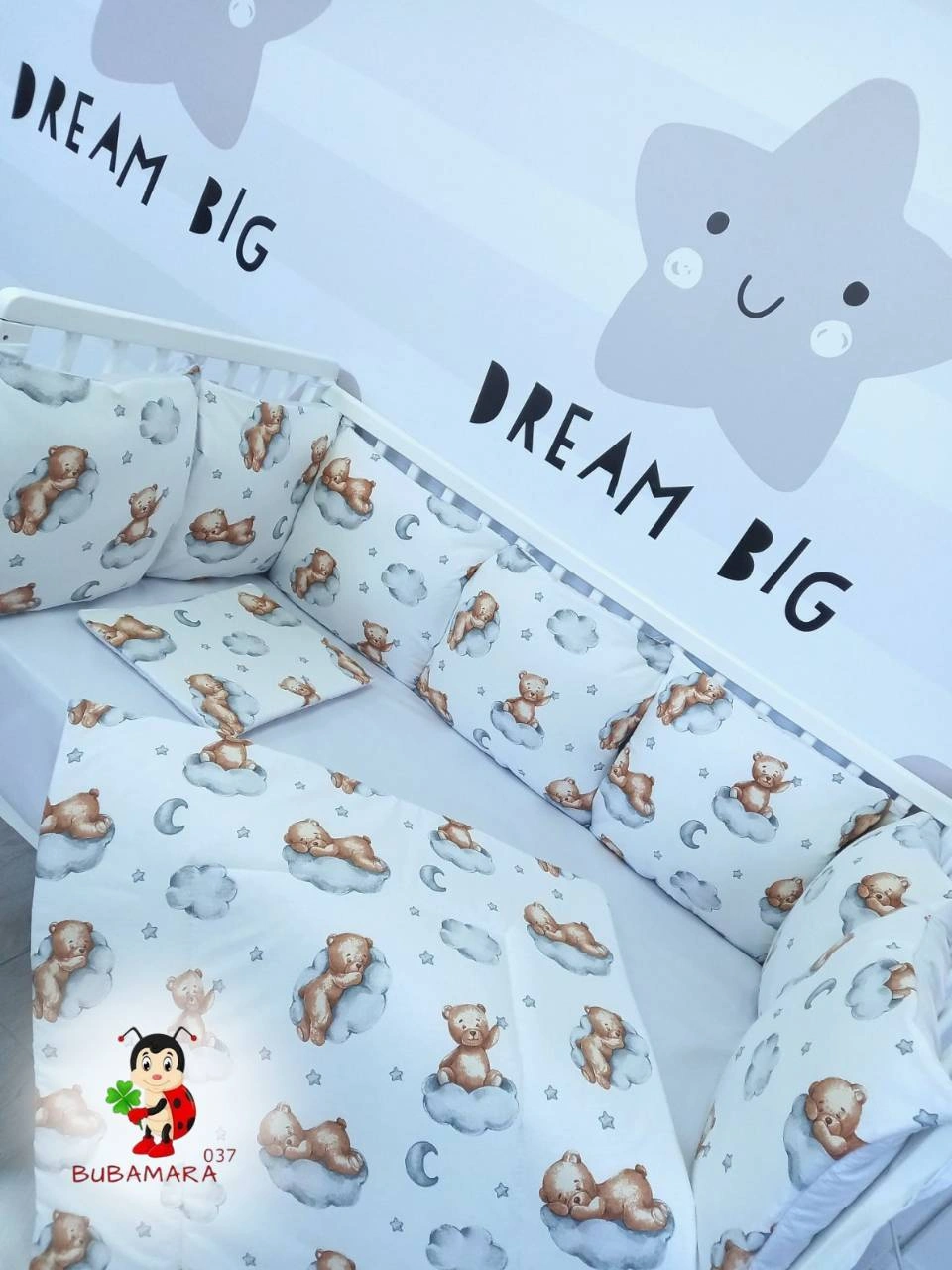 Setovi za krevetac su osmišljeni tako da bebi pruže sve ono što joj je neophodno za najslađe snove, uz neizostavnu nežnost prirodnog pamuka, najboljeg materijala za nežnu dečju kožu. U jednom setu se nalazi sve što je potrebno da bi se krevetac opremio u potpunosti.