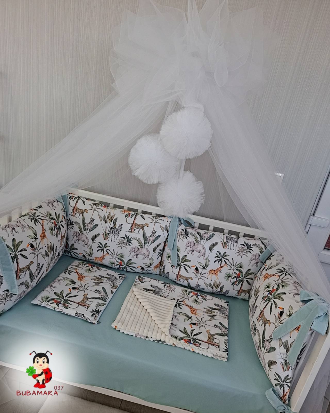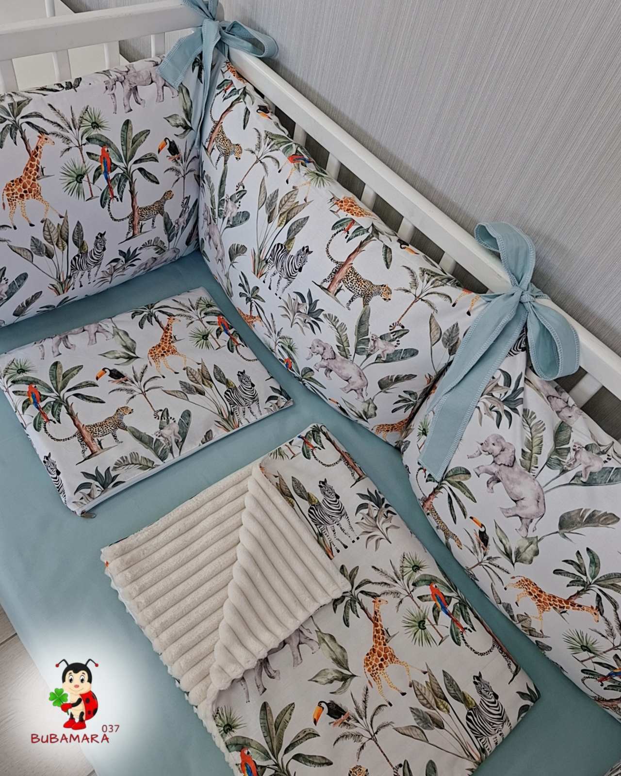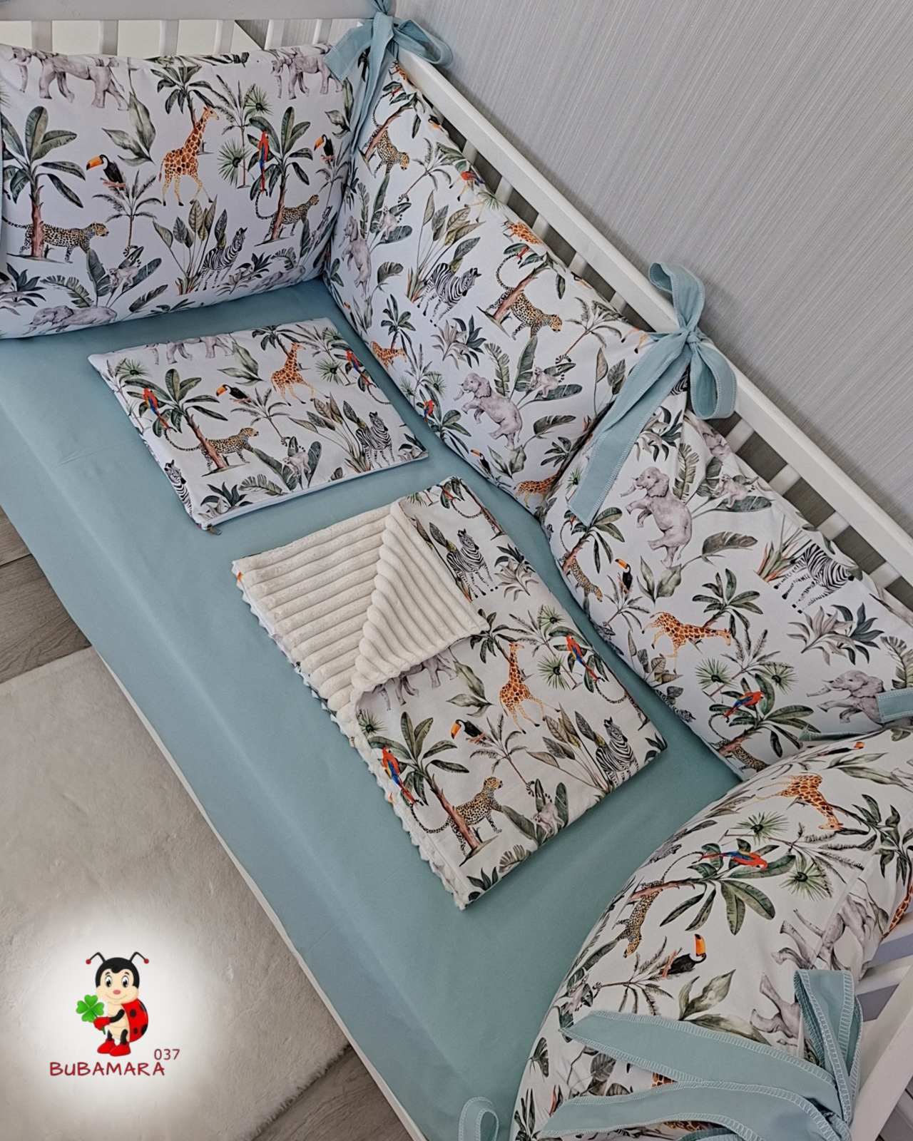 Set za krevetac sa ogradicom od jastuka tropski safari