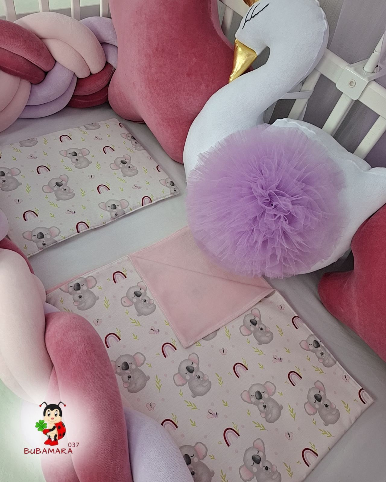 Set za krevetac sa ogradicom od pletenica mama i beba koala