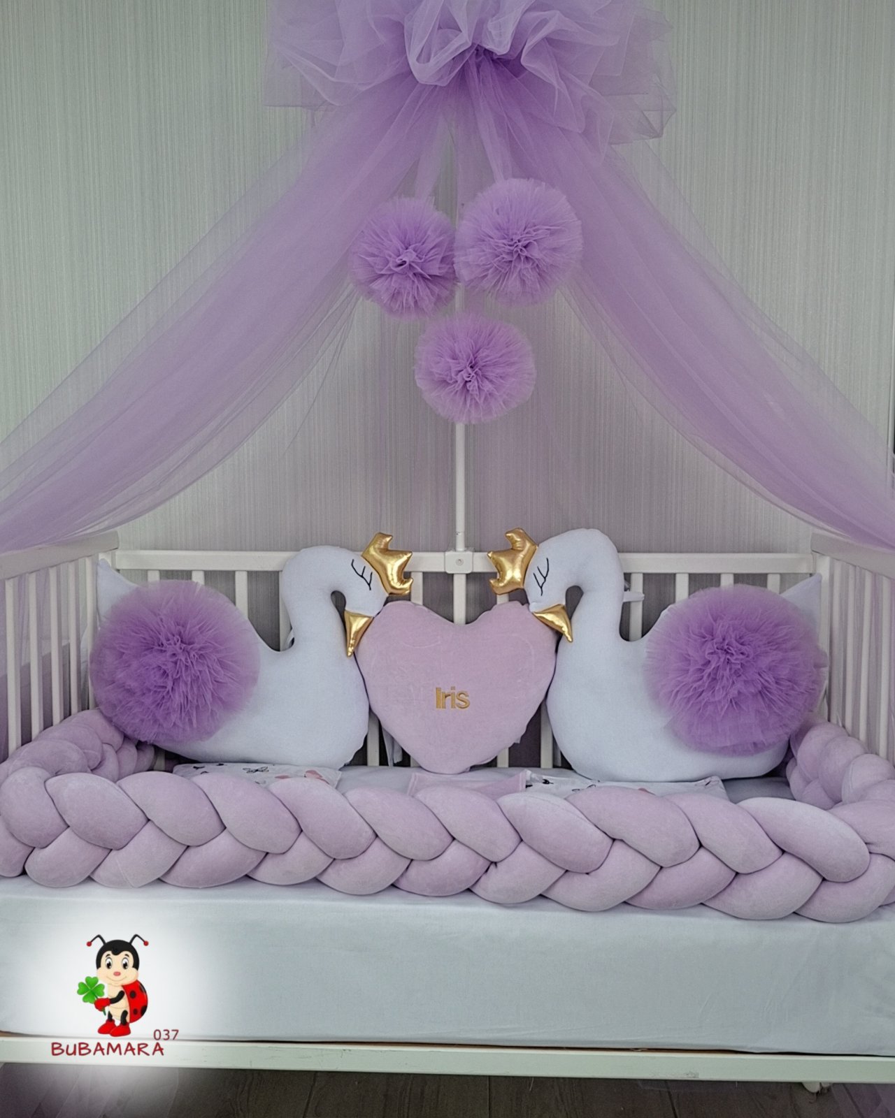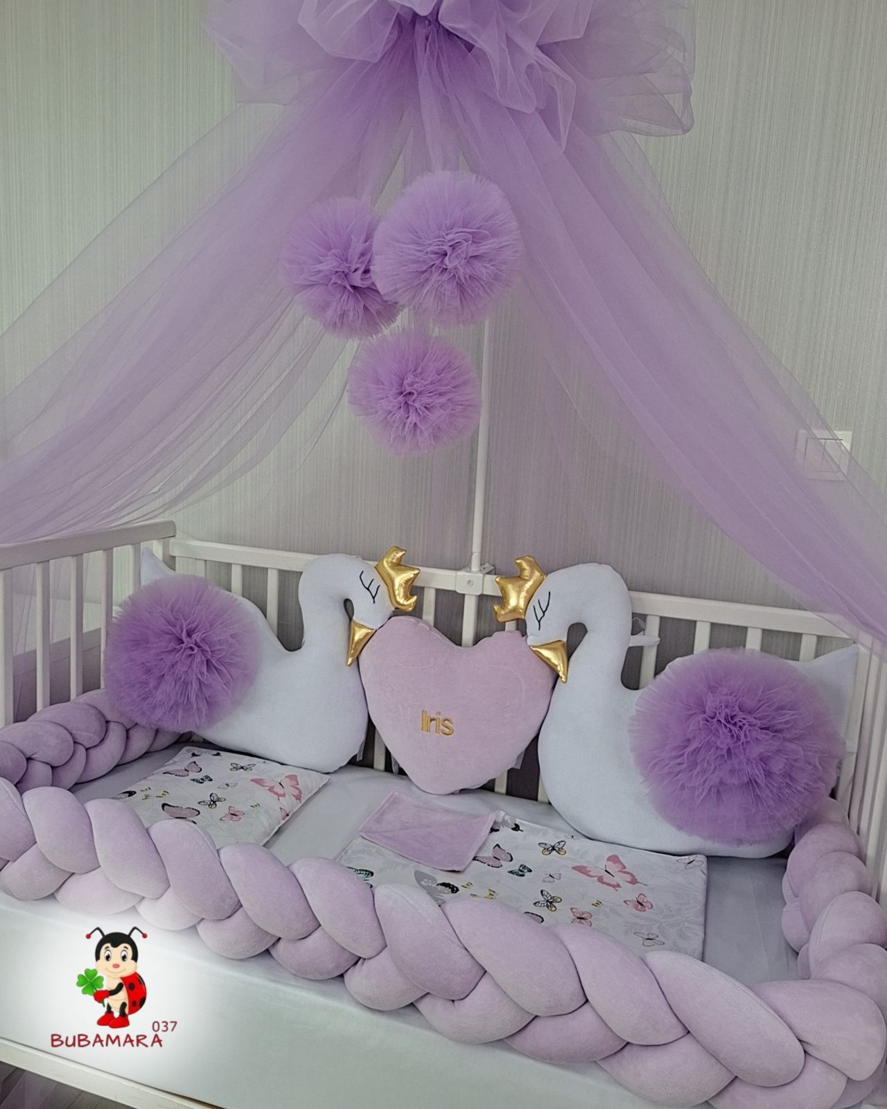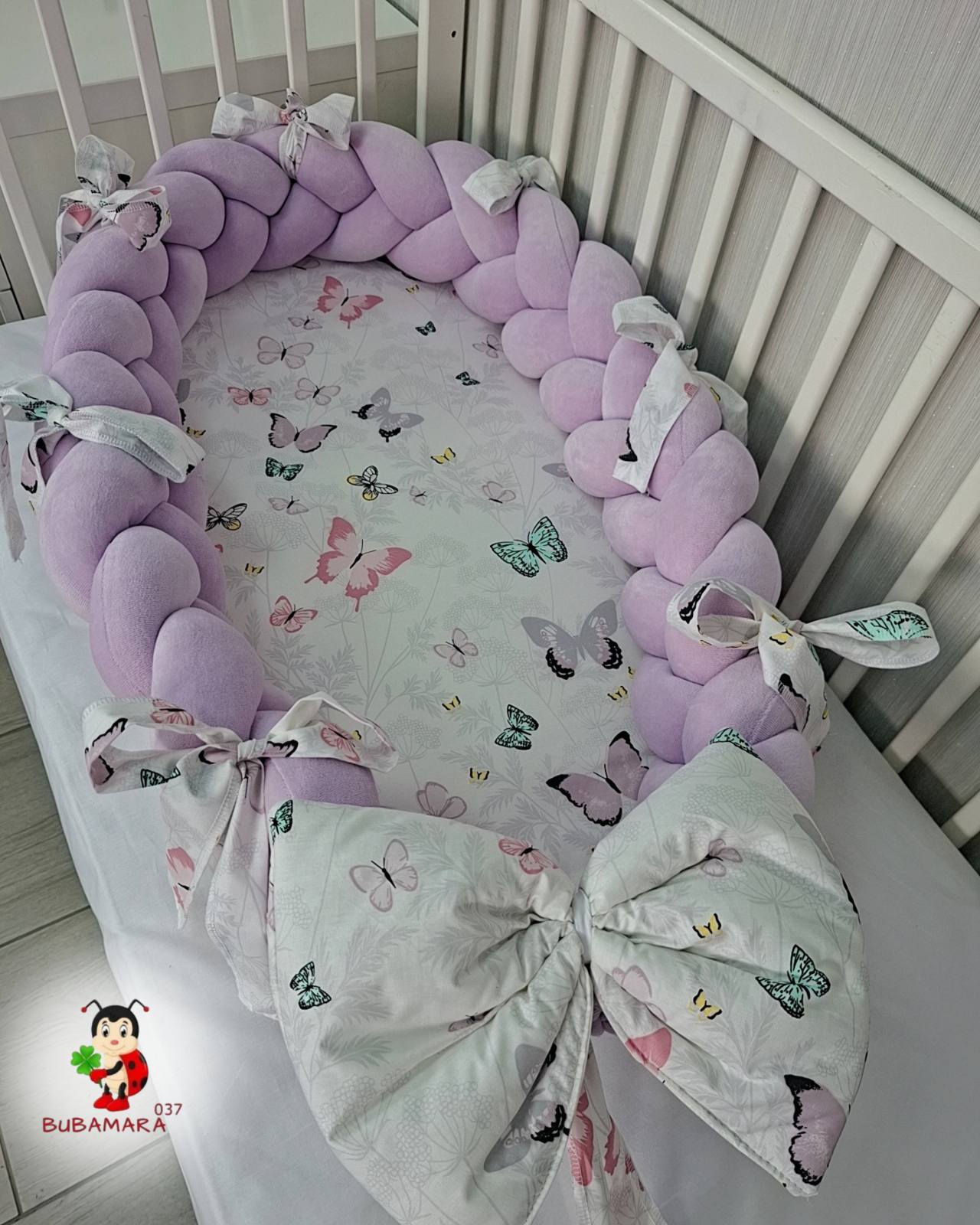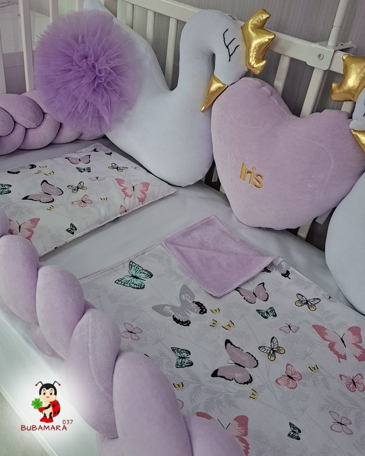 Set za krevetac sa ogradicom od pletenica leptirići lila