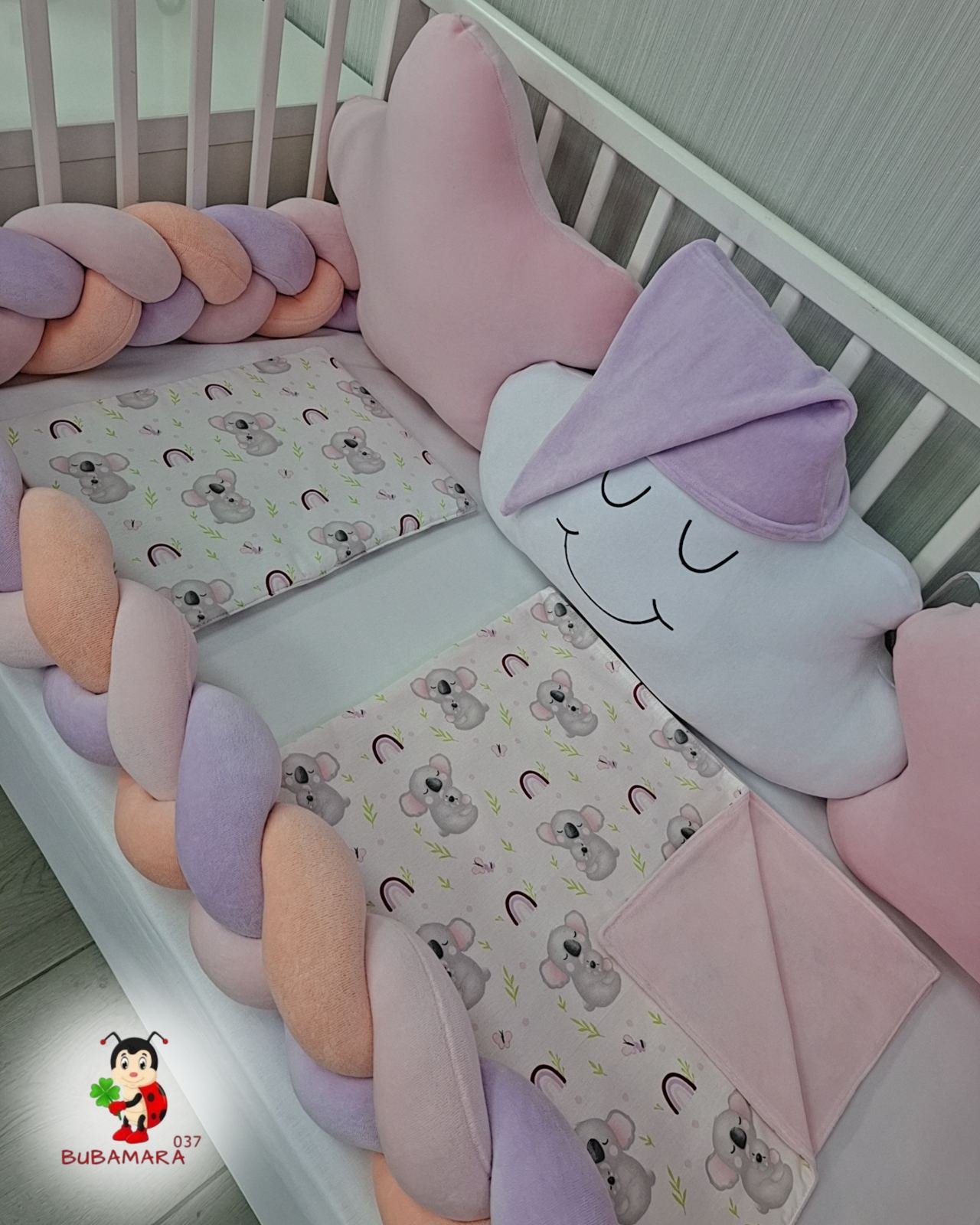 Set za krevetac sa ogradicom od pletenica mama i beba koala