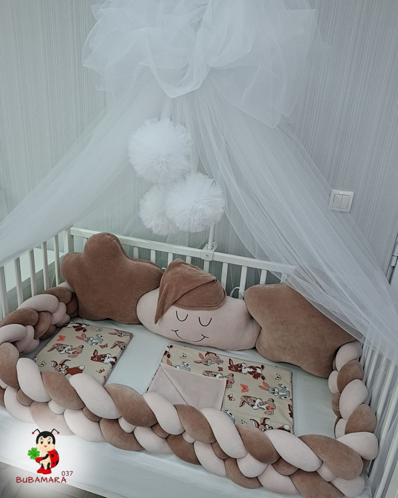 Setovi za krevetac su osmišljeni tako da bebi pruže sve ono što joj je neophodno za najslađe snove, uz neizostavnu nežnost prirodnog pamuka, najboljeg materijala za nežnu dečju kožu. U jednom setu se nalazi sve što je neophodno da bi se krevetac opremio u potpunosti.
