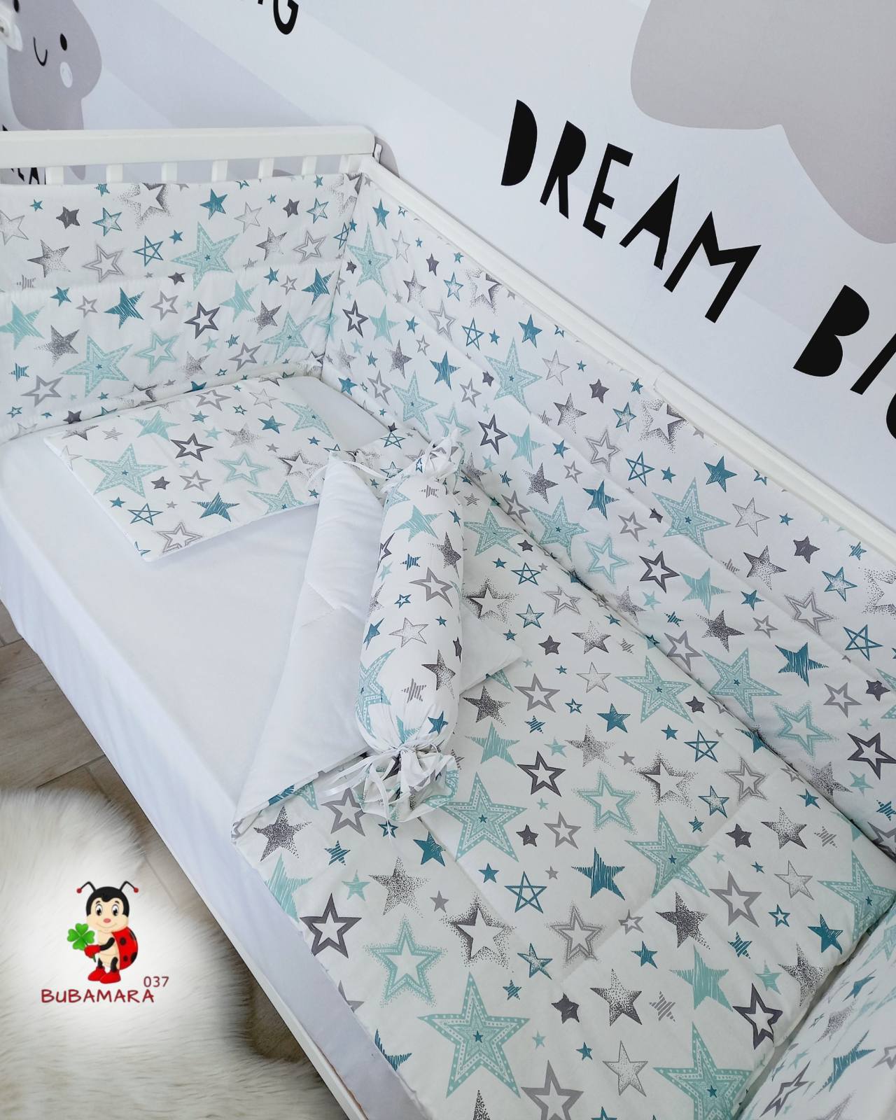 Set za krevetac sa ravnom ogradicom mint zvezdice