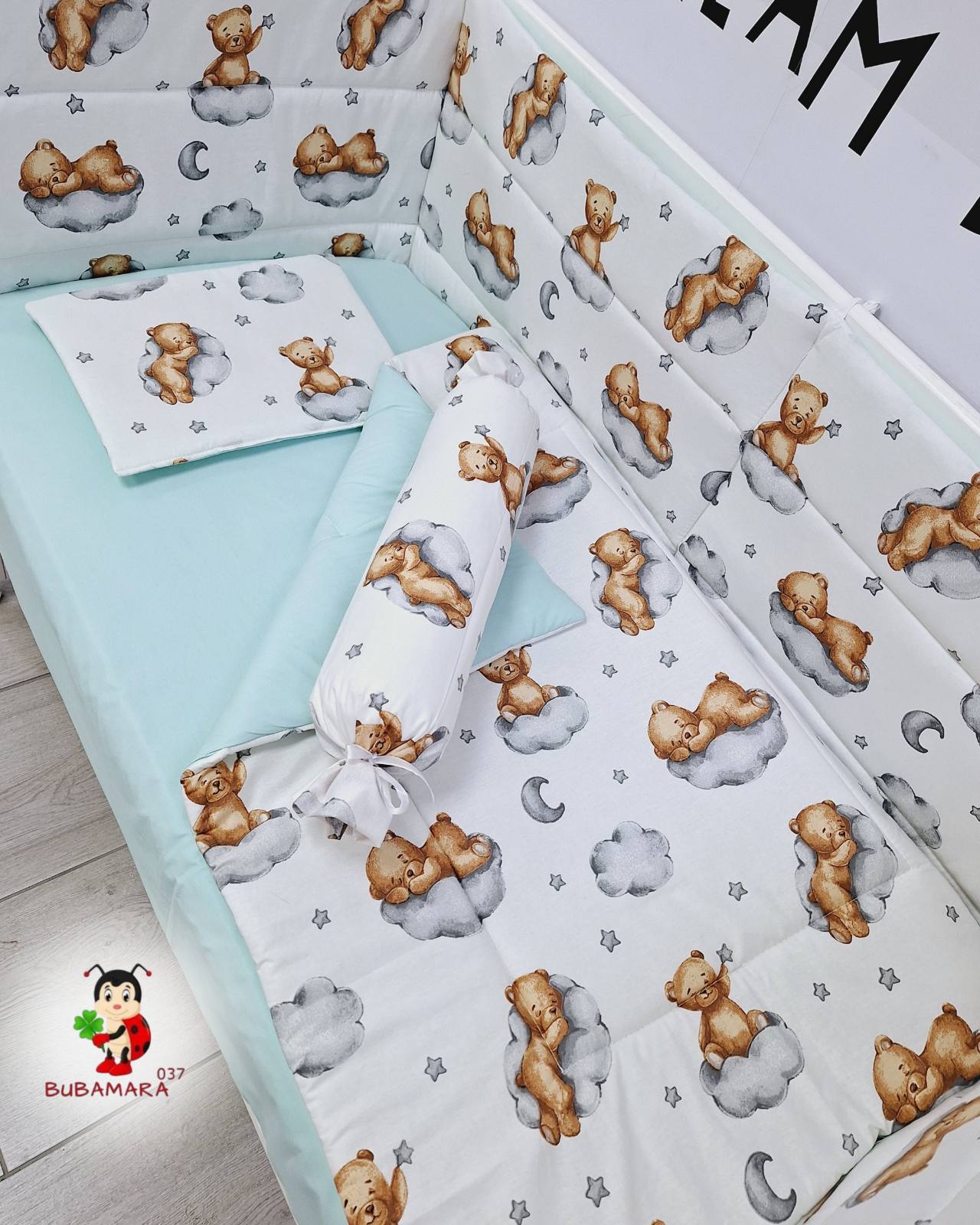 Set za krevetac sa ravnom ogradicom mede na oblaku