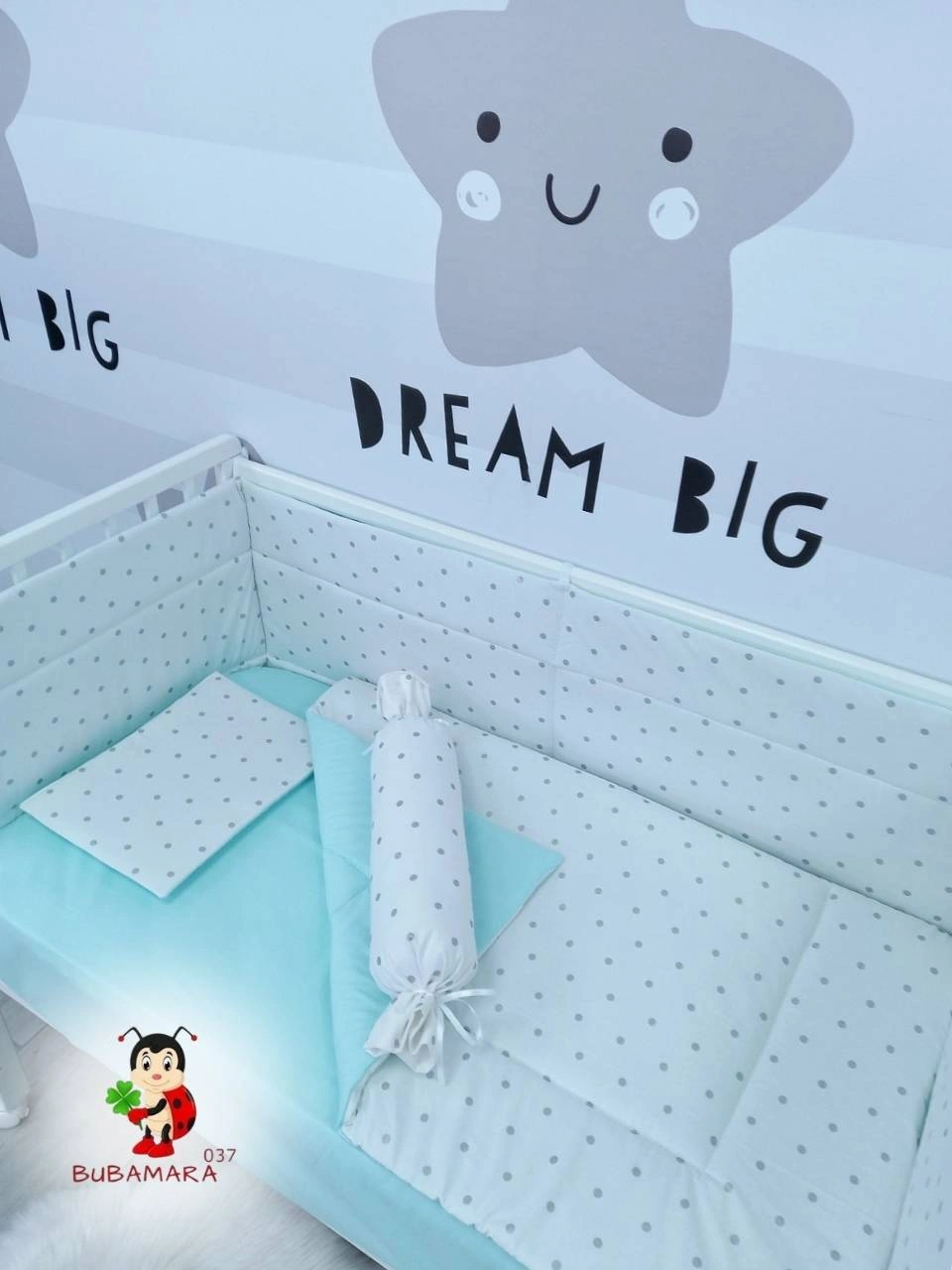 Setovi za krevetac su osmišljeni tako da bebi pruže sve ono što joj je neophodno za najslađe snove, uz neizostavnu nežnost prirodnog pamuka, najboljeg materijala za nežnu dečju kožu. U jednom setu se nalazi sve što je neophodno da bi se krevetac opremio u potpunosti.