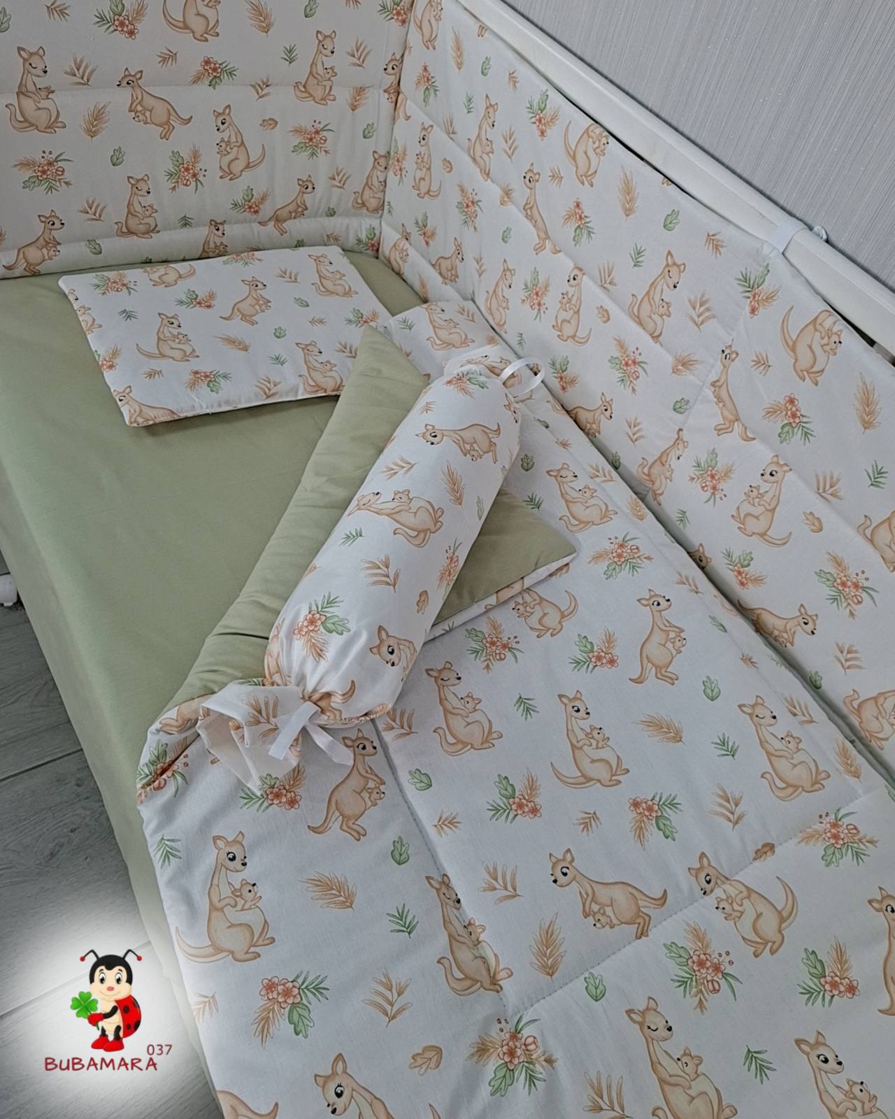 Set za krevetac sa ravnom ogradicom mama i beba kengur