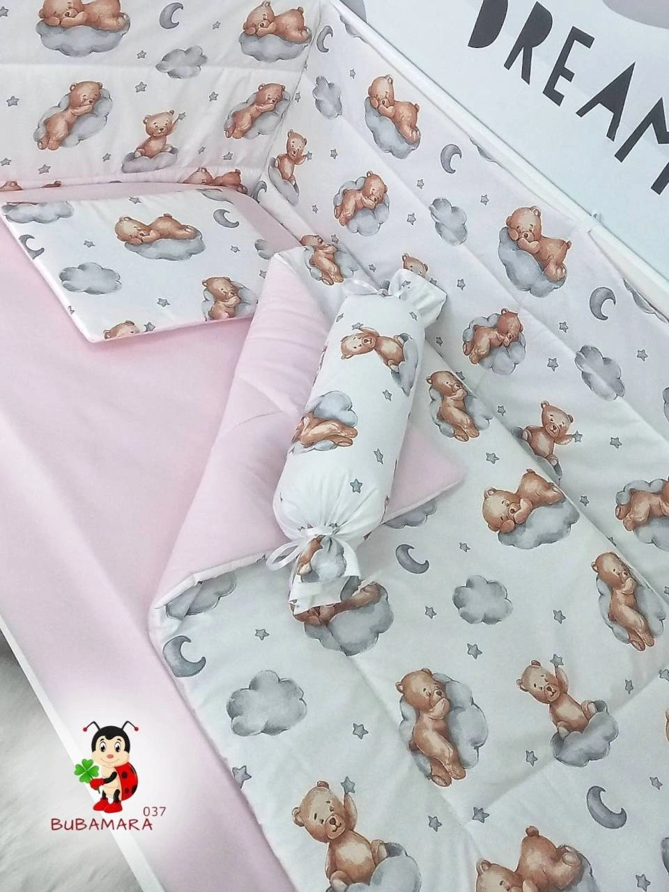 Setovi za krevetac su osmišljeni tako da bebi pruže sve ono što joj je neophodno za najslađe snove, uz neizostavnu nežnost prirodnog pamuka, najboljeg materijala za nežnu dečju kožu. U jednom setu se nalazi sve što je neophodno da bi se krevetac opremio u potpunosti.