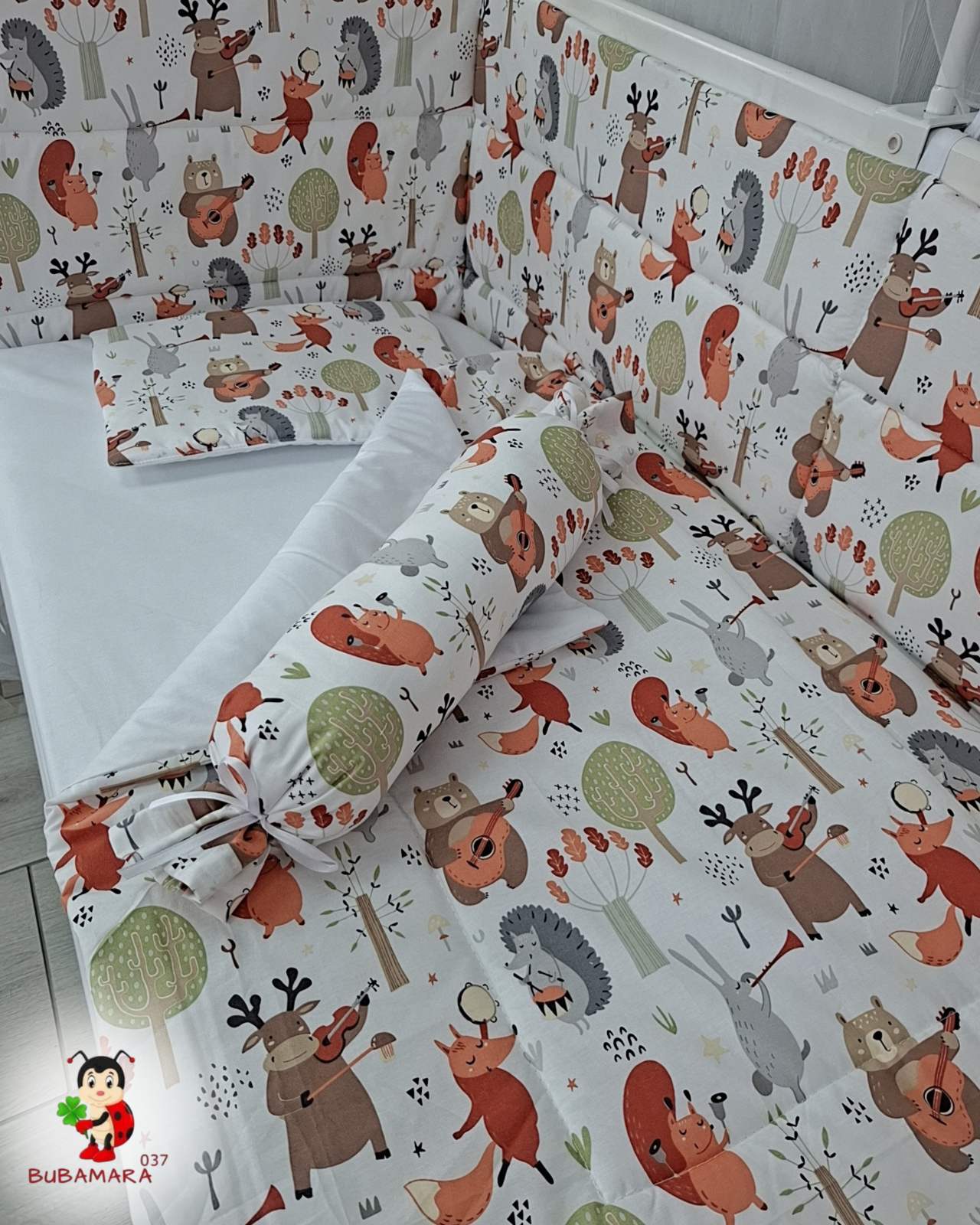 Set za krevetac sa ravnom ogradicom šumski svirači, bela